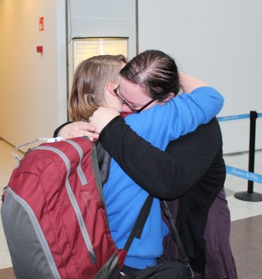 Idag var det dags för henne att åka hem tillbaka. Trots att hon under året bott hos tre andra familjer förutom hos oss bad hon oss köra henne till flyget. Hon kom till oss igår och stannade sista natten i Finalnd hos oss. Genast hon kom kändes det som att nu var familjen samlad och vår dotter var hemma. Det är så lätt och otvunget för oss att umgås! Jag är otroligt glad att hon ville komma till oss och ville att vi skulle följa henne till flyget.